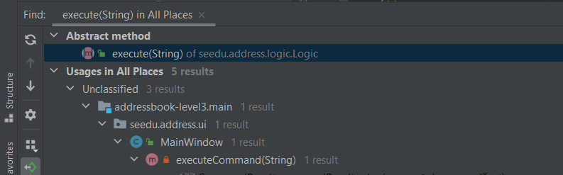 EditCommand#execute()method, you’ll see that it creates aCommandResultobject (containing information about the result of the execution) and returns it.